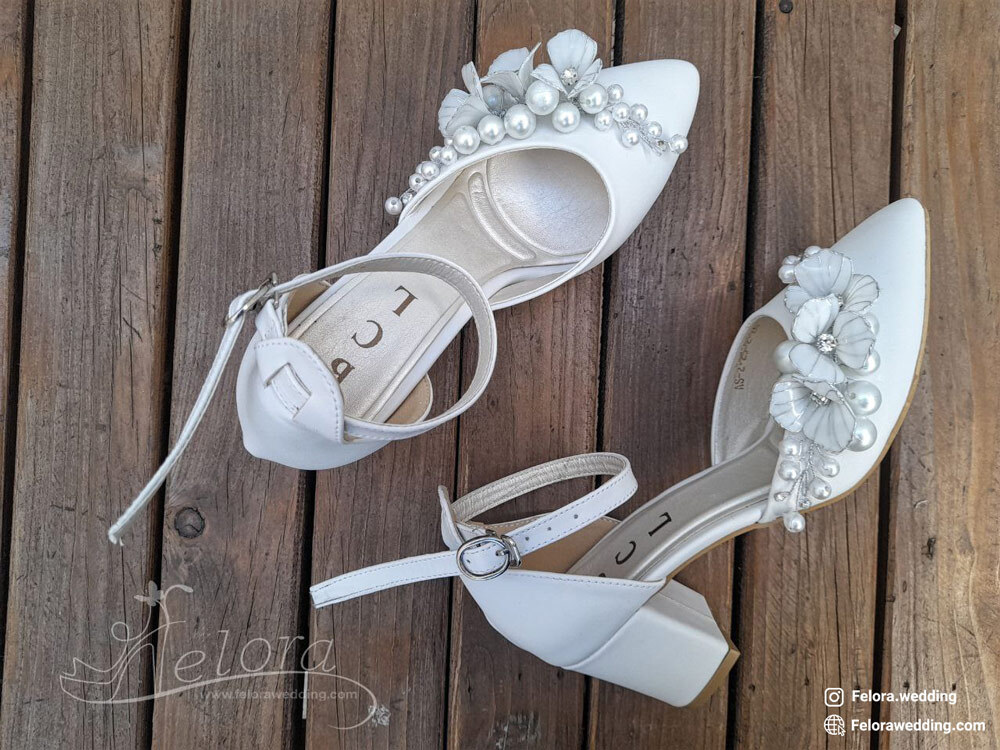 کفش مجلسی عروس مدل گل کریستالی | کد 0621